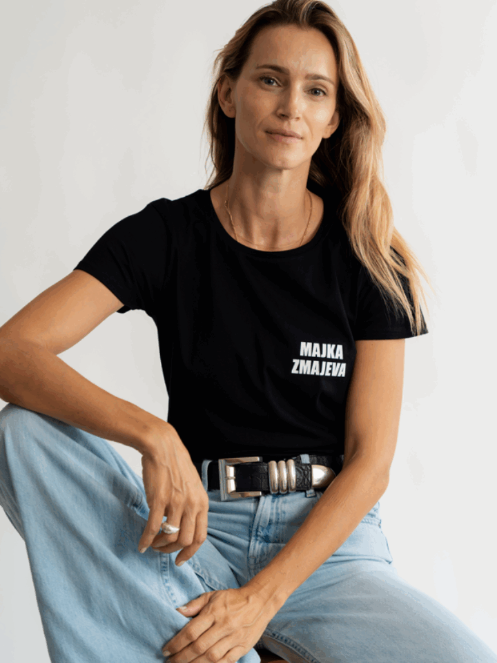 Ženska fitted majica s tekstom na lijevoj strani dostupna u bijeloj ili crnoj boji. Veličine S-L i veličine odgovaraju uobičajenom broju. 100% pamuk. Dostava uključena u cijenu. Narudžbe putem emaila.