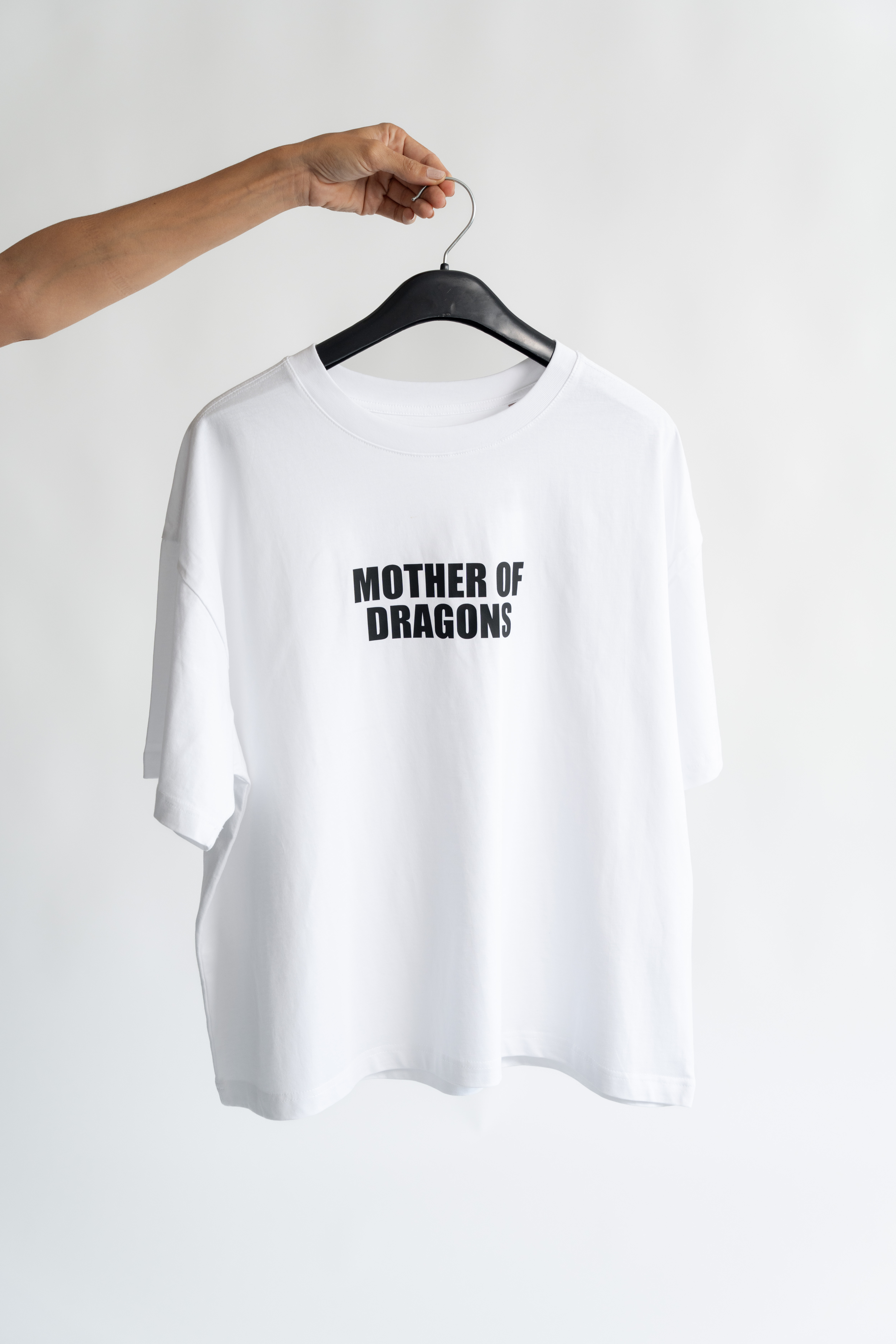 Ženska oversize majica dostupna u bijeloj boji ili crnoj boji s bijelim printom. Veličine su XS-L i preporučamo uzeti jednu veličinu manje od uobičajene. 100% pamuk. Dostava uključena u cijenu. Narudžbe putem emaila.